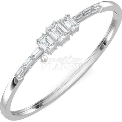 Diamond Sterling Silver Lock Bangle Bracelet