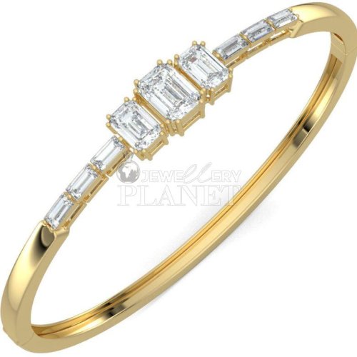 14K Gold Diamond Lock Bangle Bracelet