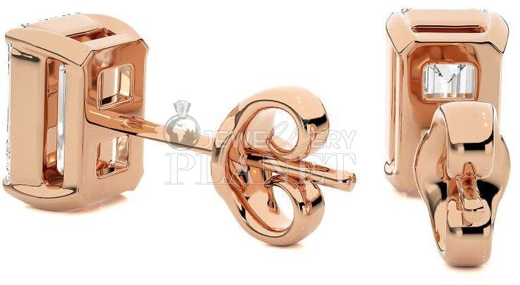 18K Rose Gold Emerald Cut Diamond Stud Earrings