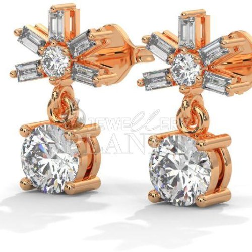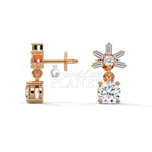 18K Rose Gold Round Cut Diamond Star Stud Earings