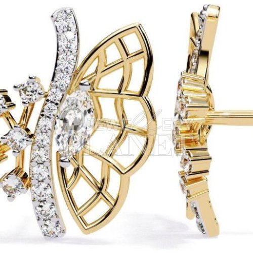 14k Gold Butterfly Shape Diamond Stud Earrings