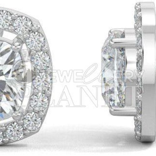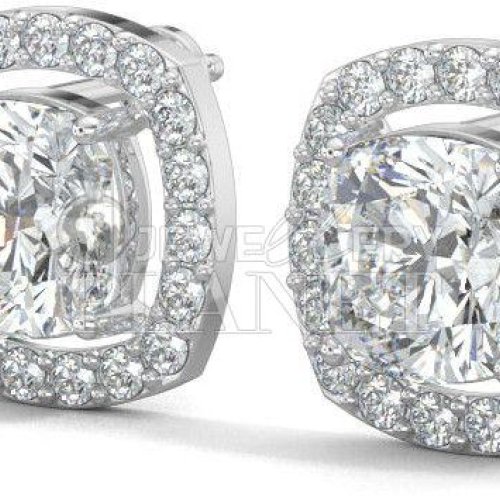 10K White Gold Cushion Halo Diamond Stud Earrings