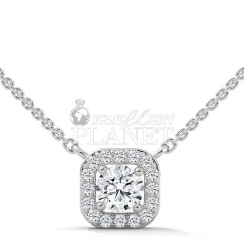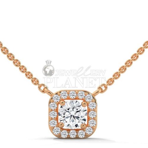 14K Gold Cushion Halo Diamond Pendant