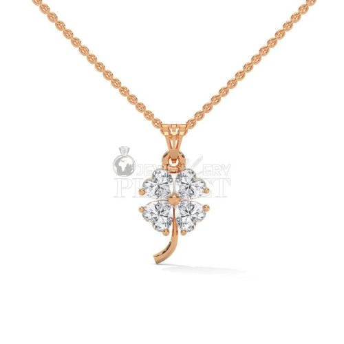 14K Rose Gold Four Petal Diamond Flower Pendant
