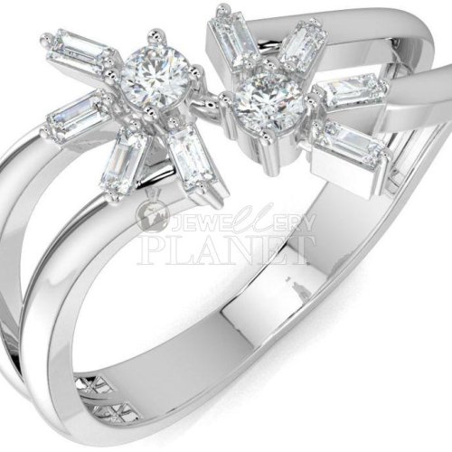 10K White Gold Asymmetrical Baguette Diamond Ring