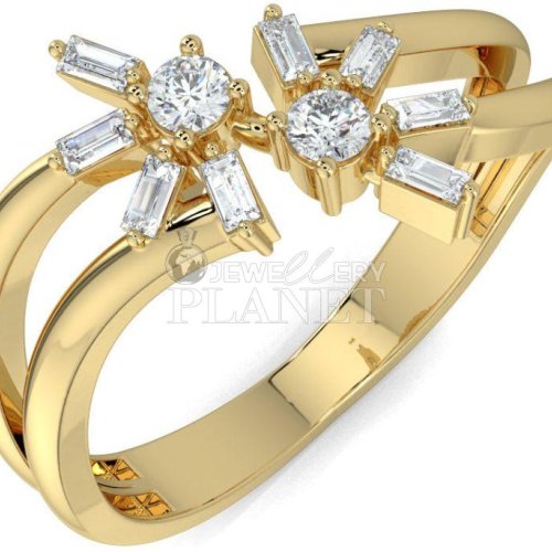 14K Gold Asymmetrical Baguette Diamond Ring