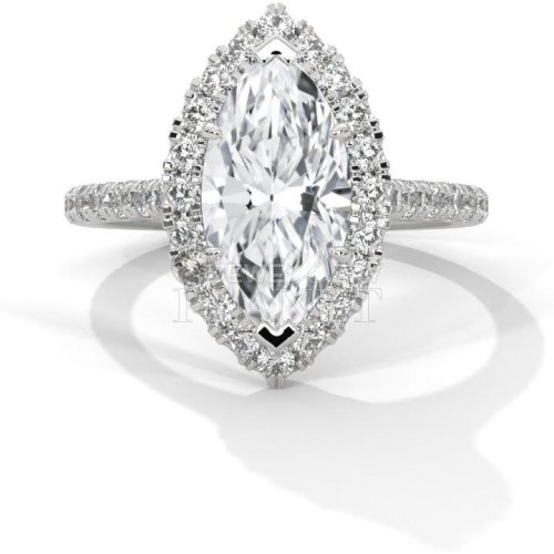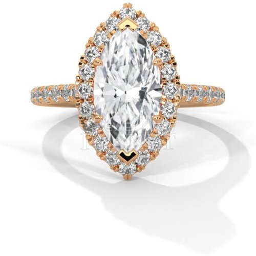 14K Gold Marquise Cut Diamond Halo Engagement Ring