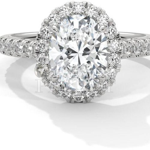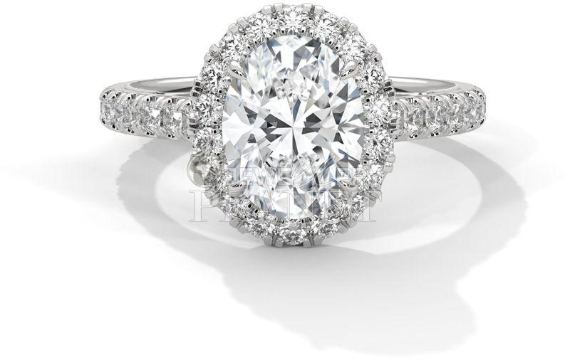 14K Gold Oval Halo Diamond Engagement Ring